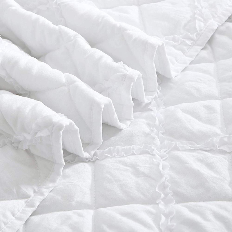 Комплект стеганых одеял с рюшами, выстиранное покрывало белого цвета